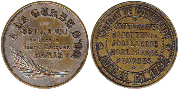 Jetons publicitaires – Paris (Seine) – A la Gerbe d’Or