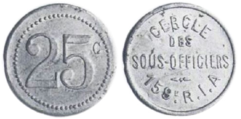Jetons de nécessité – 159e Régiment d’Infanterie – Briançon (Hautes-Alpes) – Cantine Benvenuti